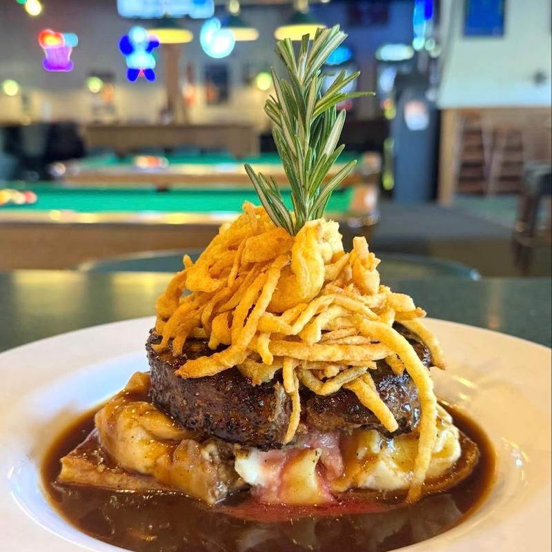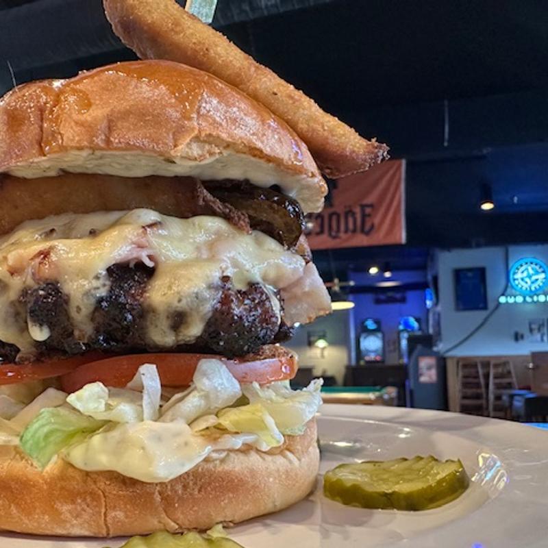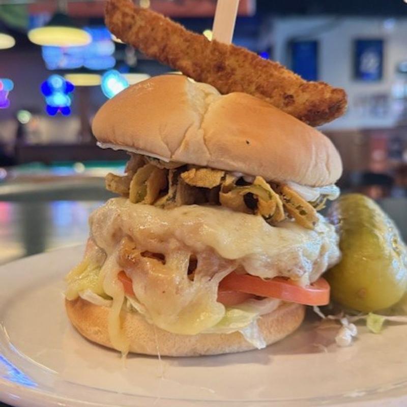 Most burgers are served on a pub bun with burger sauce. Each one comes with lettuce, tomato, onion, and pickles on the side | Choose from our 1/2lb fresh 80/20 beef patty or 1/2lb chicken breast. Comes with choice of French Fries, Tots, Sweet Potato Fries, Potato Salad, Green Salad or Cup of Soup/Chili. Onion Rings instead of French Fries +$1.00 | Substitute Chicken No Extra Charge.