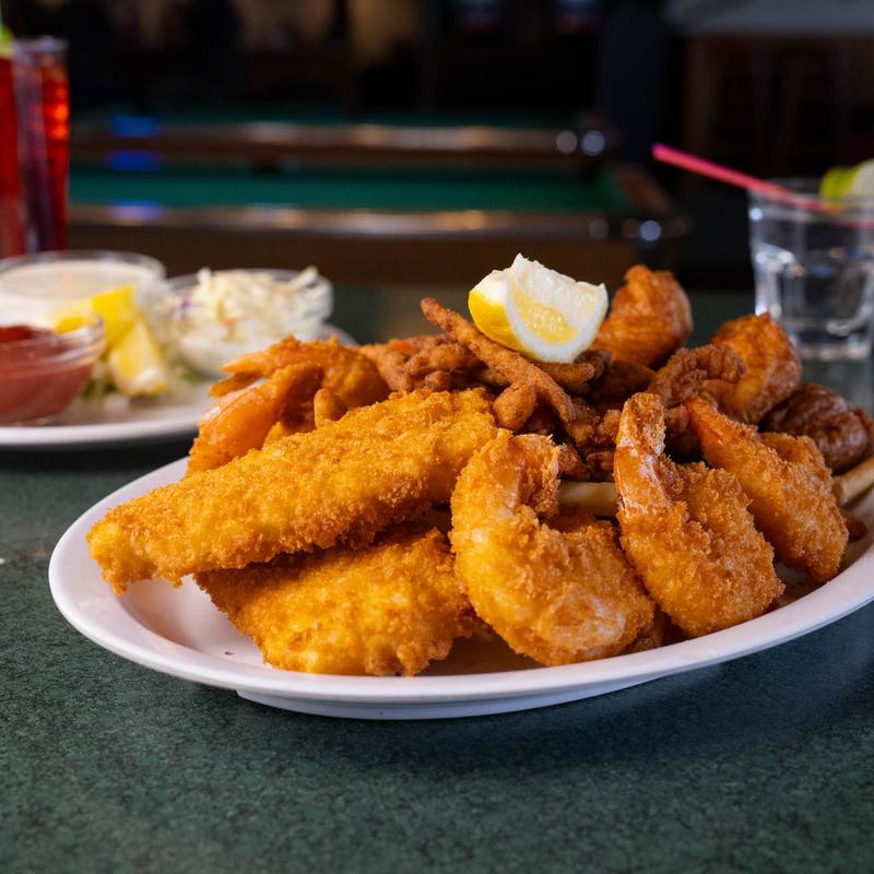 All seafood comes with tartar sauce, coleslaw and French fries. Cocktail sauce is available upon request.